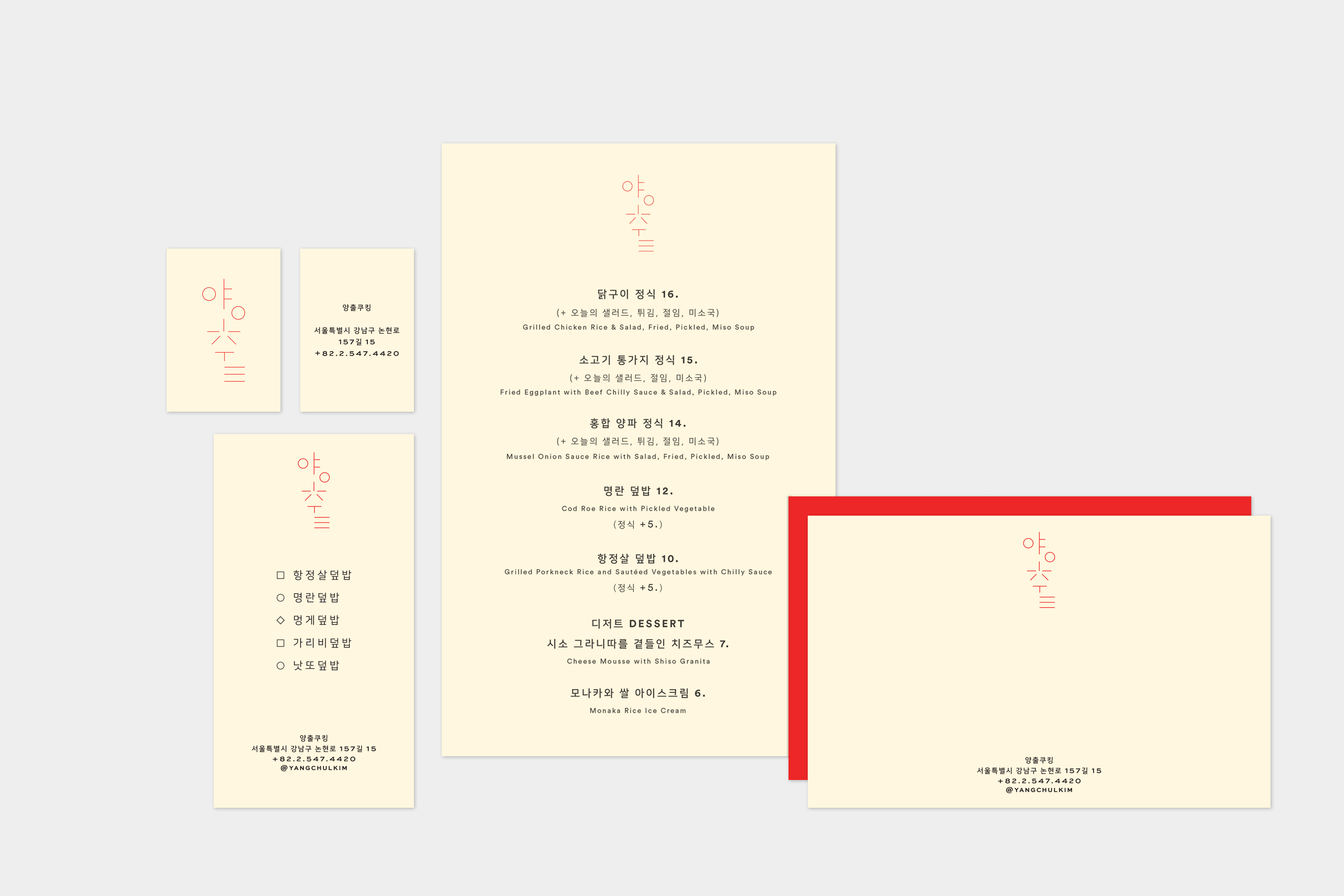 Identity for a Korean/Japanese home meal restaurant in Seoul, South Korea.